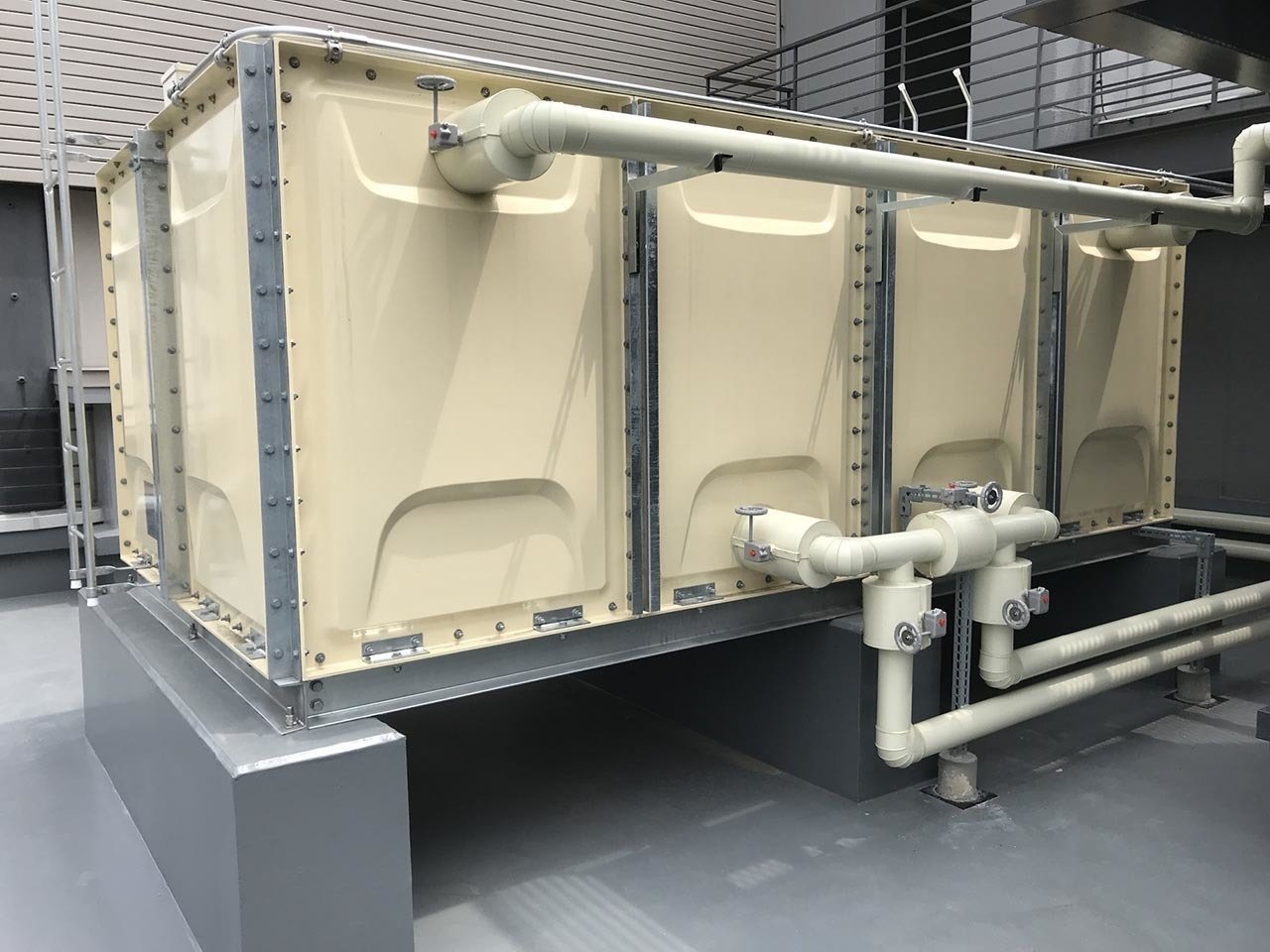 水道水を貯蔵して必要な場所へと届ける受水槽。安定して水を確保できる設備で、災害時にも活躍します。いざという時にもご使用いただけるよう、耐震性などにも考慮した安全な施工をいたしますので、安心してお任せください。