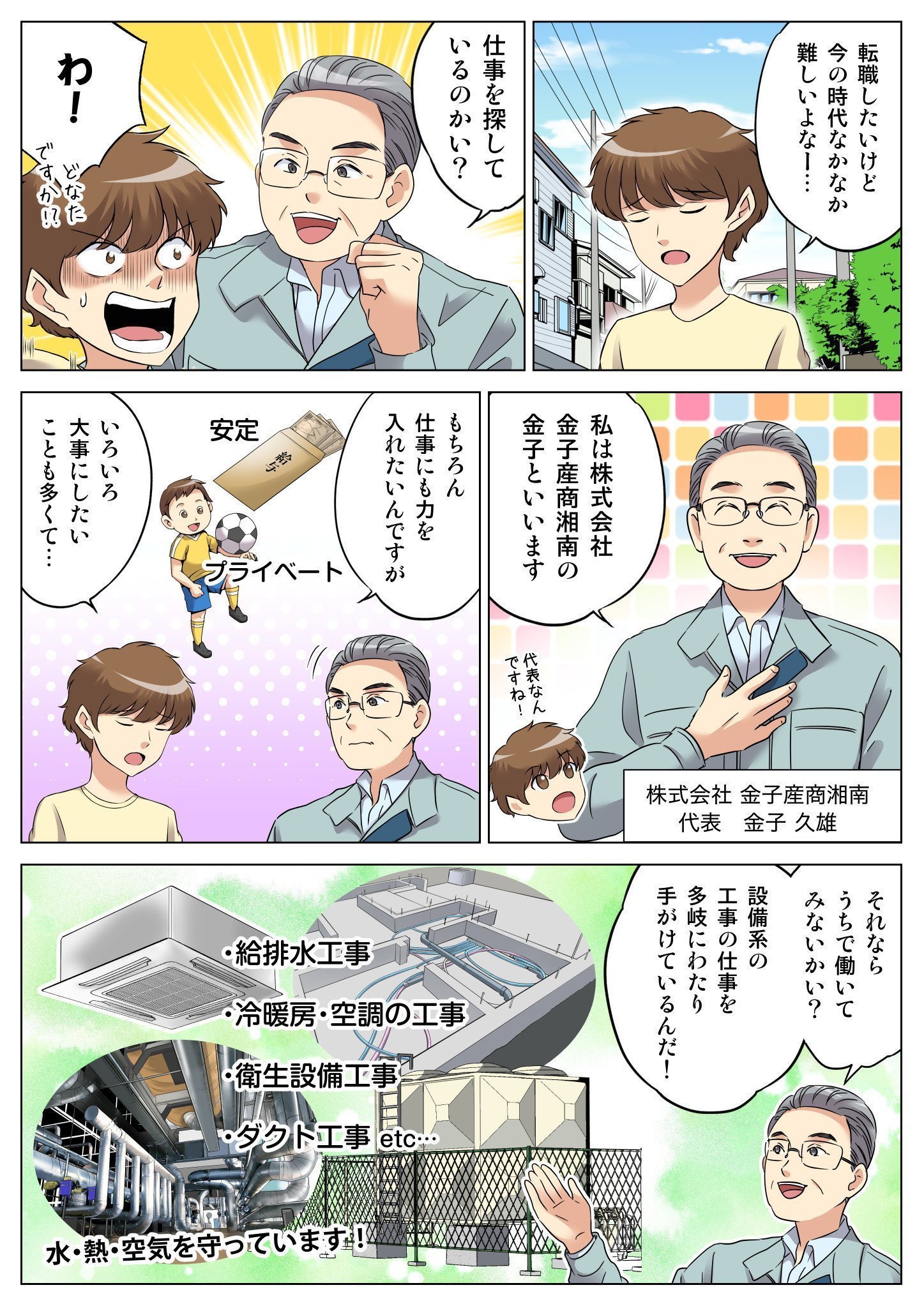 株式会社金子産商湘南は、神奈川県横浜市を拠点に様々な設備工事を請け負う会社です。設備工事全般を手掛けているため、幅広い経験を積めます。在籍している職人も経験豊富。技術もスキルもしっかりと盗みながら、設備工事のプロを目指していきましょう。